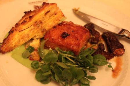 Braised Pork Belly w/ Cauliflower Gratin and Glazed Morels