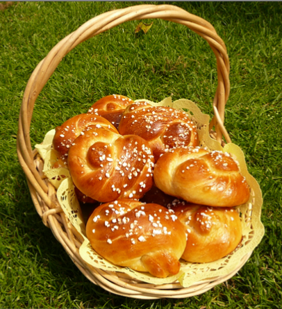 I got called to Scrabble while these were in the making. We had them with real English Lemon Curd! I'm showing them because I sprinkled them with a special sugar (hagelzucker) which helps identify them as a sweet tasting bread. (Snow = Alps!) They were a hit!