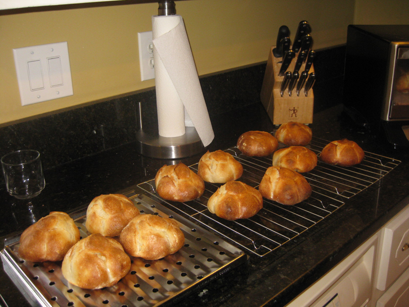 Since words are notoriously ineffective in conveying information about tactile qualities, the formula developer provides his/her best attempt at describing the indescribable, perhaps accompanying the text with pictures, but is eventually reduced to telling us to adjust as necessary. And so we do. Maybe we achieve exactly what the developer achieved (not very likely), or maybe we get reasonably close (much more likely). In either case, we learn how to make another delicious bread that we can add to our repertoire.