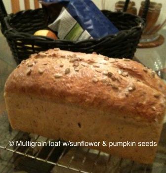 I've been doing a bit of reading on kneading techniqiues and decided to try my hand at making a multigrain loaf after seeing a beautiful 5 grain levain made by MichaelH.  I've never worked with multigrain flour so it was just an experiment by adapting to a simple wholewheat loaf recipe and it turned out quite well.  The scoring needs improvement and although it is nothing like the awesome boule that MichaelH made, it was nevertheless edible and tasted really good eaten fresh with a bit of butter.