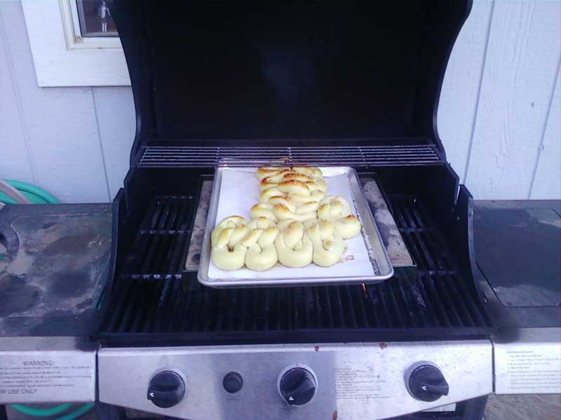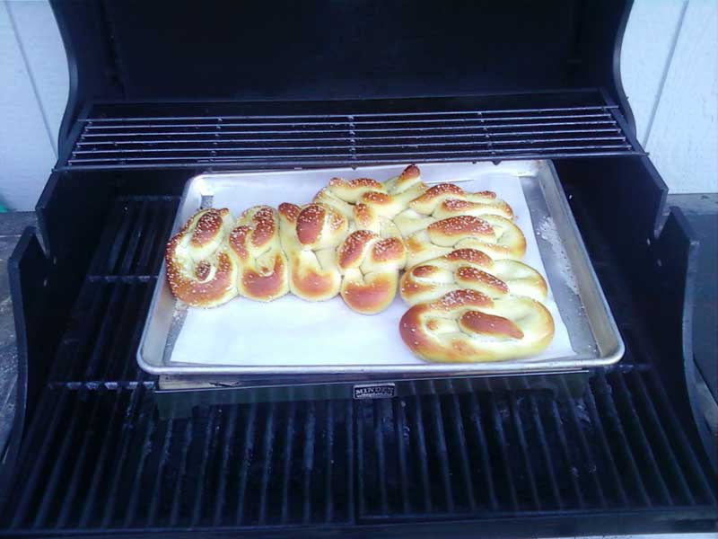 But I live in Nevada and it is hot in the summer time to hot to bake in the afternoon when I get home. So I have baking the Pretzels on the barbeque and the result have been great. Philadelphia Soft pretzel Flavor with a slightly smokey barbeques flavor. Plus the kitchen stays cool.