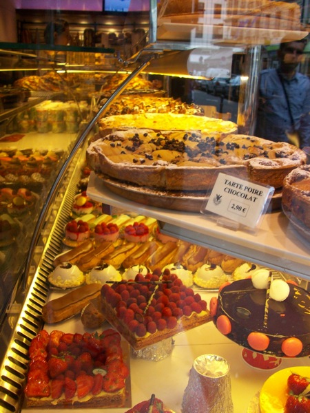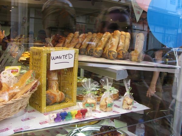 As you can imagine, I made all kinds of plans for hitting bakeries while passing through Paris. We got in on a Sunday and left Paris early Monday though, so most bakeries were closed. We did find one that was open in the neighborhood we were staying in, which was on Rue de Lombards, one of the gayer streets in gay Paris. Coincidentally it was also pride weekend, so the bakery was baking up special treats.