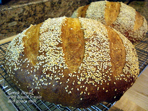 I had a starter that was fed with milk once and liked the flavor it imparted. I wonder how this would be if you fed the starter using Duram and goats milk for a couple feedings? A number of us have been chipping away at the mysterious Greek country bread. This seems like a step in the right direction.