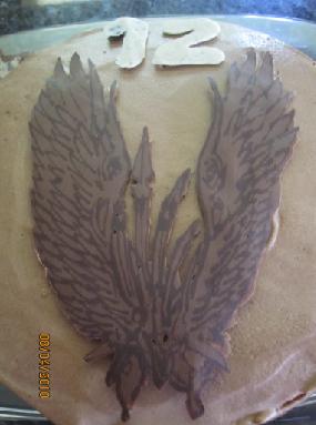 For my my son's 12th birthday.( bakugan 爆丸) He was surprised, and smiled with a joy when he saw this cake. I forgot to put a little bit of white chocolate to color his eyes.