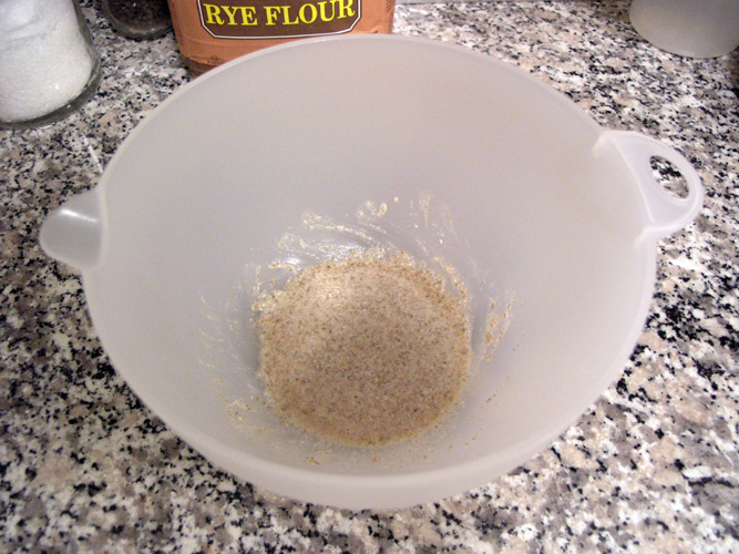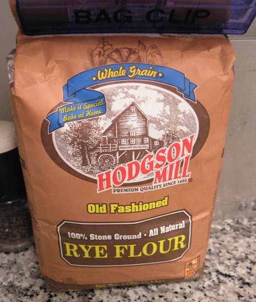 This is what started it all. The Hodgson Mill Rye Flour I found at the local Gristede's around the block from me. $5.99 for 5 pounds. Not a bad find...