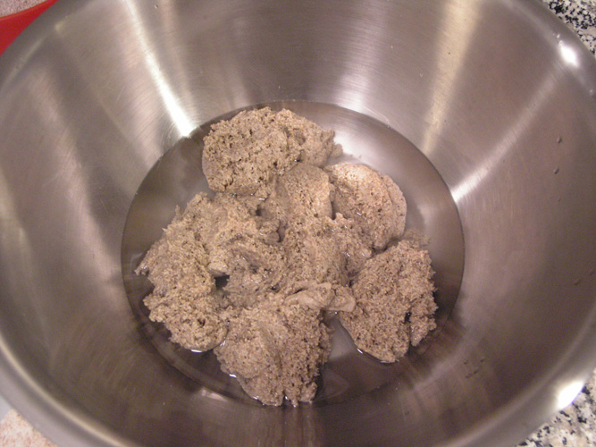 Stage 3 in pieces in large mixing bowl with pre-measured amount of water