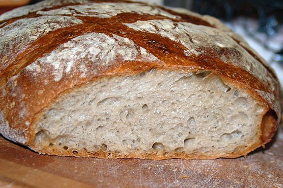 One thing that these breads have in common is hydration in the area of 80% and small amounts of yeast. This combination requires longer fermenting times and allows the development of flavorful acids. When handled gently, the bread that develops is airy and moist with great color and nutty after tastes.