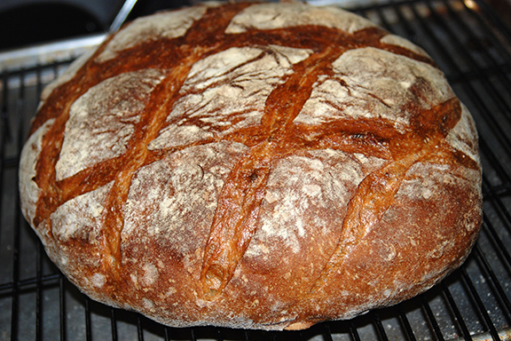 I left the loaf in the oven with the heat off and door ajar for another 5 minutes to help draw the moisture out. Remember it was an 80% hydrated mix. Cool and enjoy.