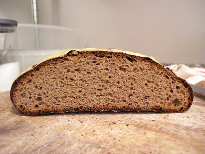 8:00am - Deliver loaf to my friend and go to work...  I left my loaf at home and didn't cut into it until today...  Here's what I found: