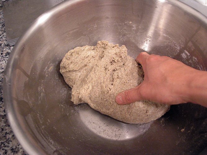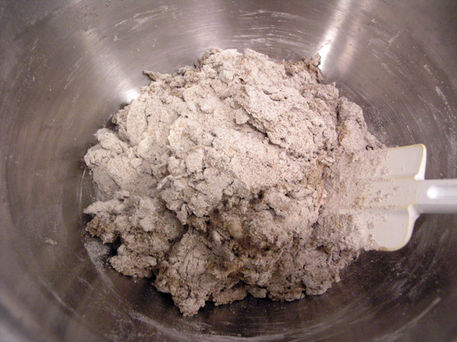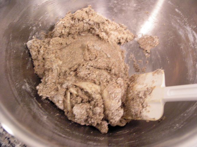 9:15pm - Mix for 5 minutes starting with a rubber spatula and switching to wet hands as the dough gets harder to stir.