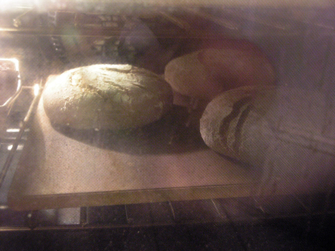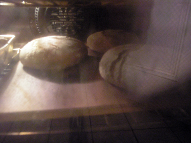 12:25am - Rotate loaves around, or between stones.  I am baking on 2 stones, starting them off on the bottom, transfering them to the top.  Bake for another 20 minutes.