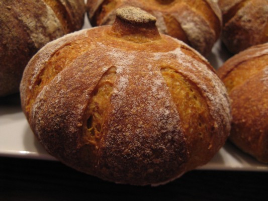 Crust was tasty, crumb very moist, and a subtle pumpkin flavor.