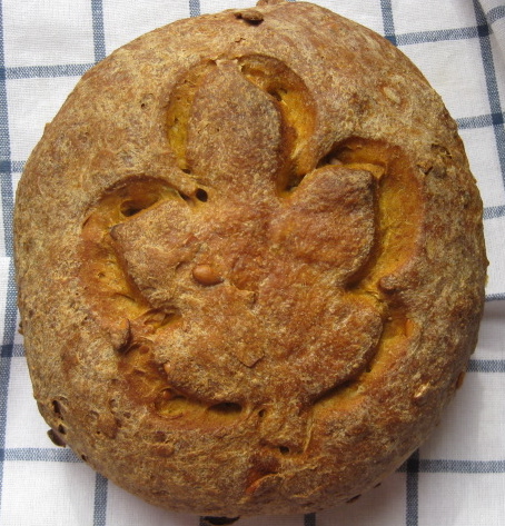 Karin, your leaf-scored bread is just perfect. What a fun technique (& thanks for giving me the German name for this bread - Kurbisbrot - I think the pumpkin belongs to the cucurbit family in the plant world? Perhaps the German word Kurbis and the English word cucurbit have a common (Latin?) origin?).