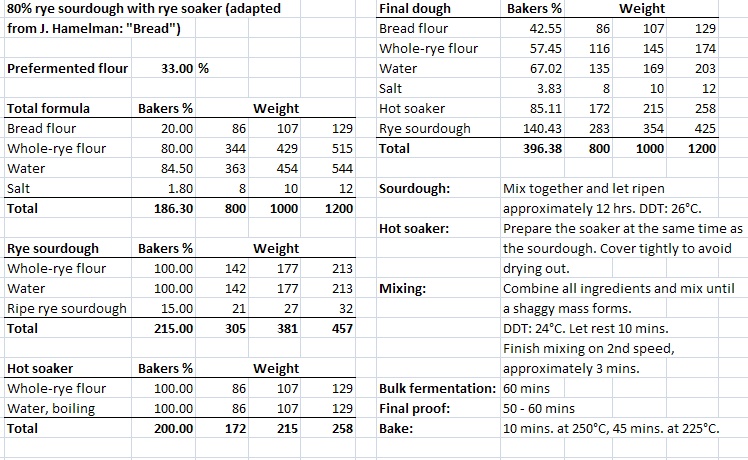 I hope you're not giving up on rye breads, arlo. Practice makes perfect! I felt that this 80% rye turned out fairly well, especially since it was the first time I tried the adapted version described in the formula I linked to, but I might increase the hydration slightly in the next bake. Rye breads can be so temperamental, and even small changes in the overall formulation can vastly improve the outcome.