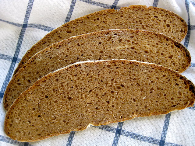 Khalid: this bread has a distinctive sourdough flavor with a hint of spicyness. If you are only used to sweet-ish American breads (I know you aren't) you might find it too sour. My husband spent part of his childhood in Germany, and this is his favorite bread. My stepdaughters at first thought it looked strange, and tasted too strong. Now they love it, too.