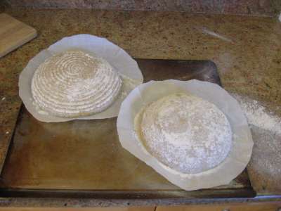Next day, formed the dough into boules, and set myself to proof the dough for 4-5 hours. Two hours later, though, the dough looked risen enough, and passed the "poke and 1/2 way back" test...