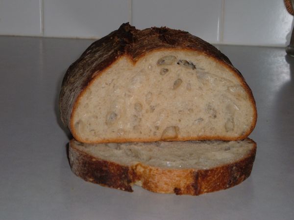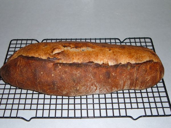 This turned out to be one of the best looking loafs that I have made. It was also the first Batard. The flavor was great. I was a bit dissapointed that it was not more sour but that will be another research topic - how to get your starter to yield a stronger sour flavor. We had it toasted for breakfast and it was so good.