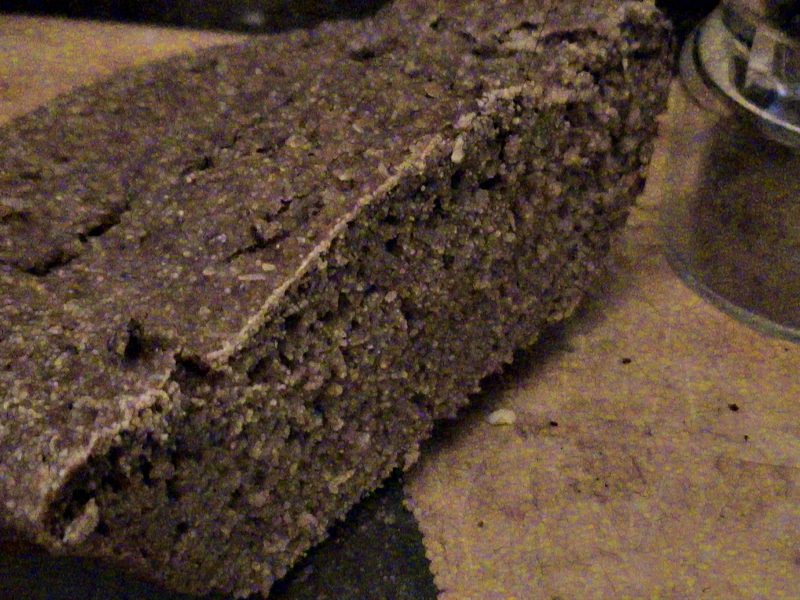 So here the second trick was to keep the "disconnected crust" syndrome to a minimum, something that I'm told is all-to-common for rye-newbies. It was also something that I'd noticed happening with in my large loaves, but again I was not highly concerned because a given slice was still big enough to use to make a sandwich so I was happy. But now needing a small loaf, I tried Mini's ratio, I did everything as I should with the exception of the fermentation-time. As a result, I got a somewhat hollow loaf, despite having docked it. This left me with slices that were hardly large enough to do anything with, much less sturdy enough to butter, lacking a non-estranged crust on one side.