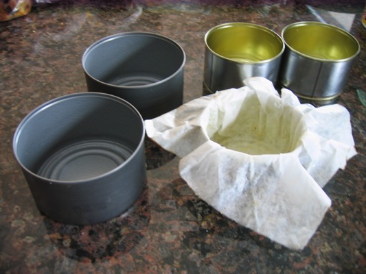I've learned a lot from both this forum and from baking lots of bread. One of the lessons I learned early on is that specialty pans are expensive and that 99% of the time there is an alternative in the cupboard already. So-not having a pannetone pan and not planning well enough ahead to order the papers for holiday baking was not too much of a barrier. I decided what size loaf I wanted to bake, went to my cupboard and found some adequately sized cans-YES cans!