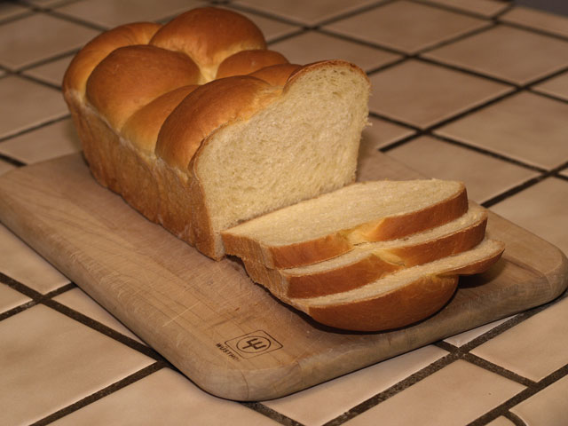 It looks a little like a challah, the Jewish egg bread. It is rich and wonderful for sandwiches but not as rich as brioche. Sturdy without being too crumbly! Very yummy! There are good recipes on this site or you can try the one at: