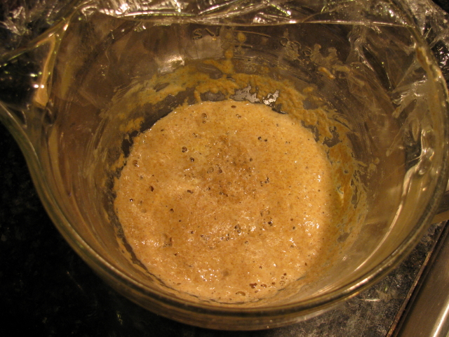 This is my spelt starter I began on Monday,!st pic is before,second pic is 1 hr after adding 2 tbs of spelt flour and 2 tbs of well water today,friday.It's got a very strong sour smell that reminds me of fruit processing plants I've done outside-contractor work in several times .Yesterday(thursday)it suddenly really came to life with lots of bubbling and strong smell.