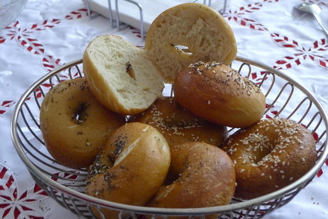 I had to work Chistmas day for the last time before I retire in January. It was a quiet day with lots of empty beds, quite unusual for out ICU. We had a lottery for Boxing Day and I won the day off. I visited with my sister and her husband for a while and went home and set up a batch of bagels for Boxing Day morning. I had some small spots where they spilt and I am not sure why. I couldn't find my timer and guessed on 2 minutes for the boil so that may be the problem. Noone seemed to care though and they tasted great.