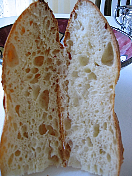Anyhow, here are the results of the baguette bake: I'm generally pleased with the crumb but exhuberant over the open grignes the steaming created.