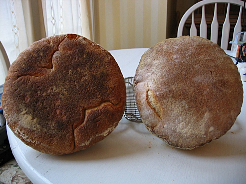 The one of the left was baked in the Lodge Combo cooker, while the other sat directly on the baking stone. Now some contrasts: