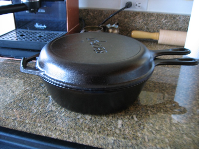 I preheated the oven to 450 F, and put my new Lodge Combo Cooker along with its lid onto the FibraMent baking stone.