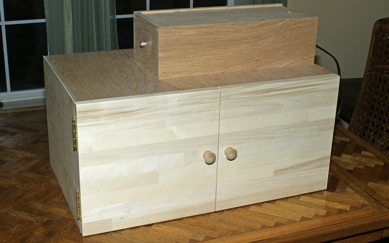 I've been working on a proofing box since late summer, but had to put it aside for a couple of months, due more pressing things. However, I finished it last week, tested it, made one modification and really finished this morning with the door pulls. Of course it still needs a coat of stain and varnish, or tung oil, but that's just for its looks. It's functional now.