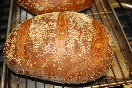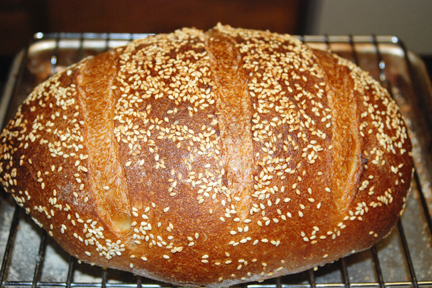 Hello Eric, Your bread looks so, so good. David's original post is now in my favorites list...I must try making it as I love durum/sesame bread. Thanks for posting and you loaves look great! from breadsong