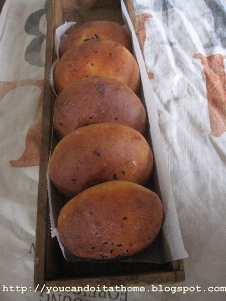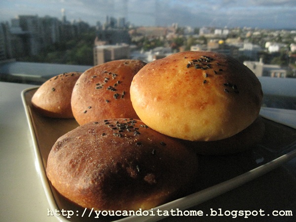 Yummy bread rolls, with sprinkled Parmesan and black sesame seeds
