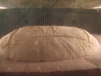 I was very happy with my firebrick "baking stone" for this job; there's good crust color which I hope will taste good! from breadsong