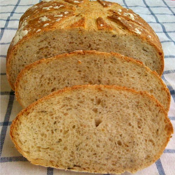 Turned out pretty good although I'm a fan of more aerated crumbs. I did the shaping before putting in the refrigerator so only had to let sit before scoring. Baked both in a Dutch Oven covered for 20 minutes and then uncovered 20 minutes approximately. I would describe the bread as a rustic bread and a good representation of that genre. The flavor was very earthy, organic and herbaceous. It's not my personal favorite of the Sourdough breads, but if I wanted to demonstrate a rustic bread or a bread that was grown from herbs in my backyard, this is an excellent example.