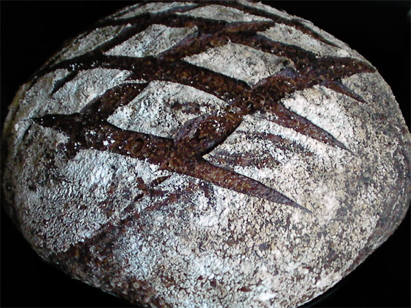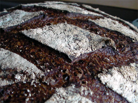 I think the outstanding flavour of this miche can be attributed to two things: the addition of toasted wheatgerm and, as dmsnyder puts it, a bold bake. (I love the alliteration there. It makes it sound quite naughty: as if it were something one shouldn't be doing).