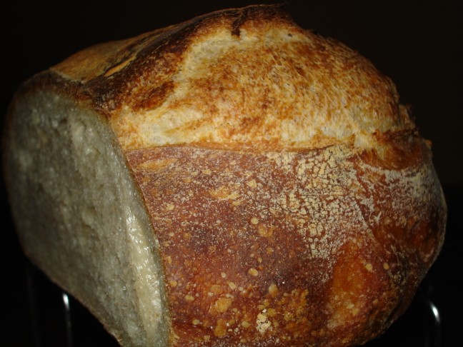 * the pie weight did help preventing the bottom from getting burned...however, the bottom ended up not having a nice brown colour. After 40 minutes, I took the bread out of the pot and put the bread back in the oven for another 4 minutes to give the bottom some colour.