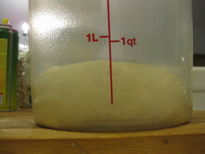 Combine starter with remaining ingredients. This is after 1 minute of mixing at low speed.