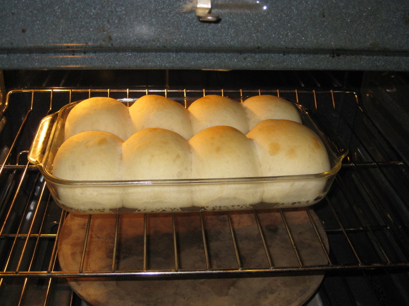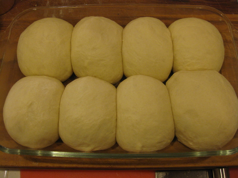 I decided to shape into 92g rolls, placed in a greased 9x13 pyrex dish: