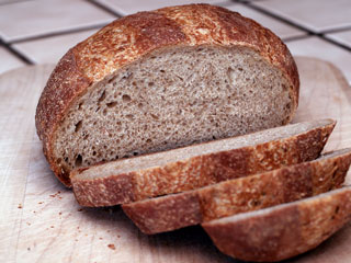 Calling this "beer" bread has a point, in that the addition of a nice fully hopped brew should add an additional flavor dimension of hoppy bitterness that is subtle and enhancing rather than strong and overpowering.  Perhaps I should have gone and bought the amber ale called for and drank the Beck's with lunch.  In any event that flavor dimension was not very prevalent in these loaves.  They are good, but I think these would be more accurately called whole wheat and rye.  I accept responsibility for that, for both the beer selection, which weakened that flavor component, and for the inclusion of the rye meal, which gave the bread a stonger rye flavor.  I'm certain this combination of divergences does not do justice to the original flavor.  The beer does add a softness to the crumb however, that is an excellent offset to the chewiness (IMHO) of bread flour.  The crust is not a crispy french bread crust that shatters when you cut into it, but has a very agreeable chewy bite that is also very flavorful.  Overall this is better than average bread, and I will make it again.  Next time I will get the proper amber ale and leave out the rye meal to see what difference it makes.