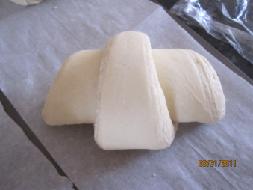 After I cut the dough triangle shapes, I put them in the refrigerator for a couple hours to shape nicely. I can't get such a length to roll many times.   I saw other Japanese home bakers shaping very well..  hmmm
