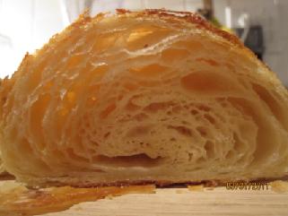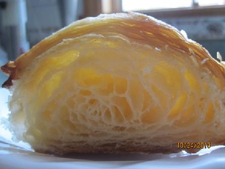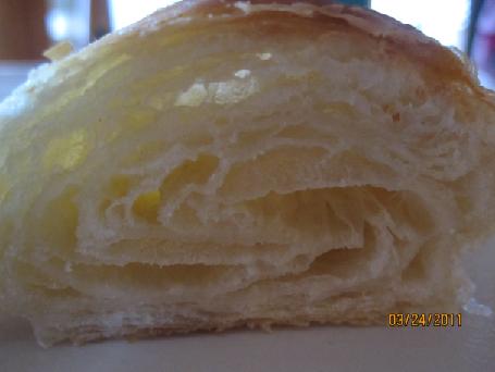 Next time, I may not put the triangle dough in a refrigerator because I saw some crumb are not flaky but doughy.  I don't know if the method produce doughy crumb..