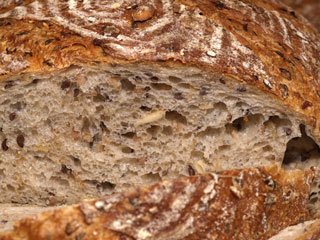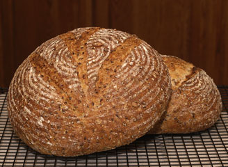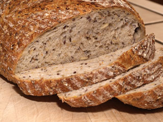 I expected the seeds to be more pronounced, but I was pleased to find that there is a homogeneous flavor that the seeds do not dominate. Instead of any mouthful having a single prominent flavor there are any number of small individual bursts of taste from wheat, bulgar, oats, flax seeds, pumpkin seeds, crust. It tastes great and made a fine accompaniment to a robust beef stew.