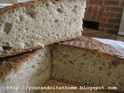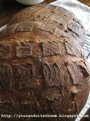 It is one of the tastiest bread I made so far. I love its chewy crumb, crackling crust, and pronounced sourness (which I wonder if it has anything to do with whole-wheat flour in the starter).