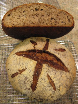 Ingredients (levain, increased whole wheat flour, rye meal) were inspired by Mr. Rosada's formula.