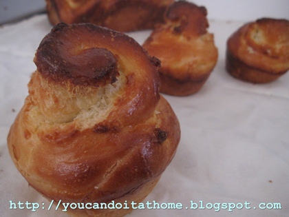 Trying to replicate the coconut bread from an Asian bakery that we love (it's buttery bread with random moist coconut filling throughout), I was thinking about making the bread into babka-shape with the coconut butter filling. I also made half of the batch into coconut rolls baked in a muffin pan.