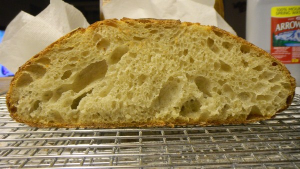 Crumb: The natural-yeast version was much more open than my spiked version. Dunno why, could be due to the deflation upon scoring... ?