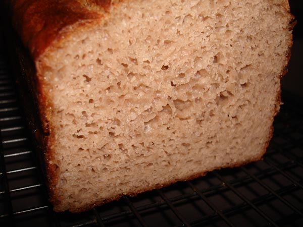 The texture was very much bread like, the gluten developed nicely. It was especially nice toasted with some butter. I didn't cover the top, it cracked but didn't burn.