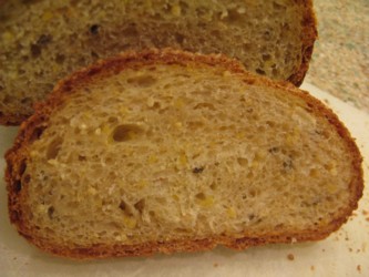 The generosity of Sesame Seed topping plus the lovely single cut to the top of the loaf make this bread extra appealing. Love those yellow flecks in the crumb too