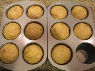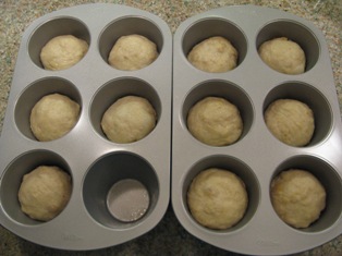 Here are the pictures; the dough was divided in to 200g pieces (I was guessing for size but it worked out ok; the muffin wells measure 3-1/4" deep, and 3-1/2" across at the top, 2-1/4" across at the bottom):