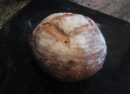 apple raisin yeast water that has continued to give me such satisfactory results. I have you to thank for teaching me about multi builds. This boule was made with only 200 grms of flour and the rise is the best I have experienced since I started experimenting with builds. - Judy